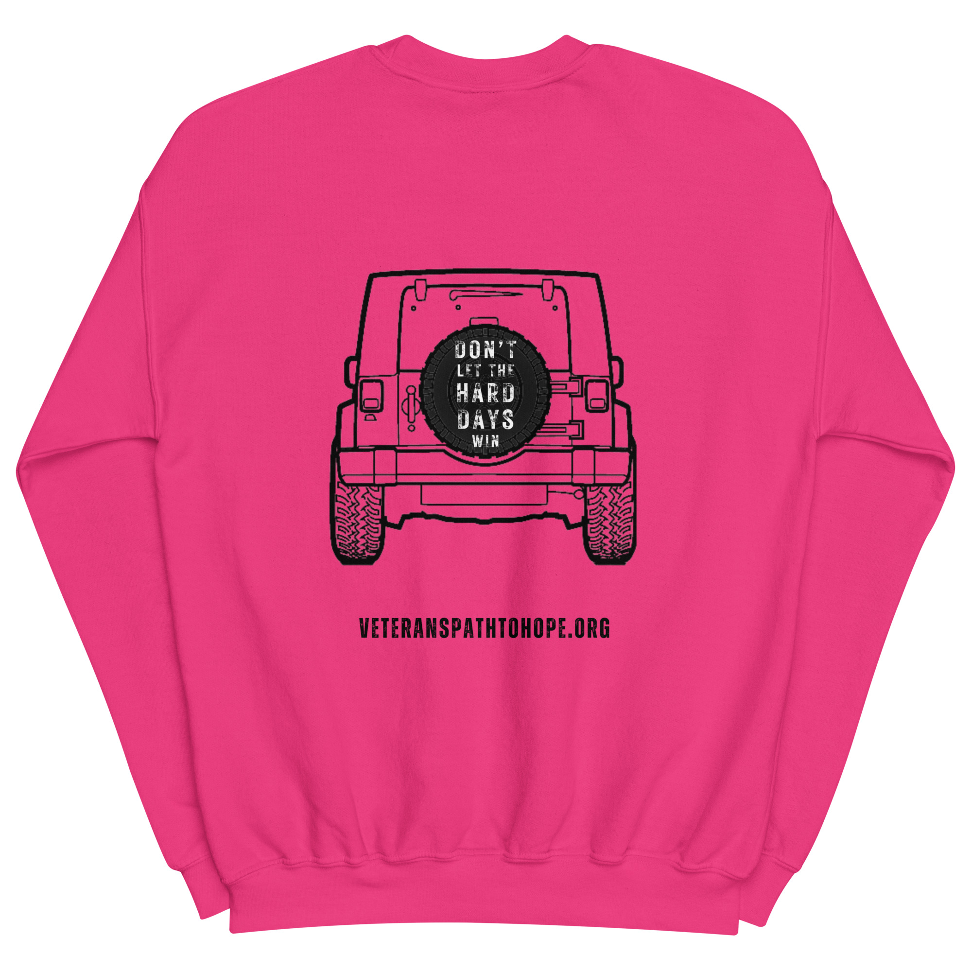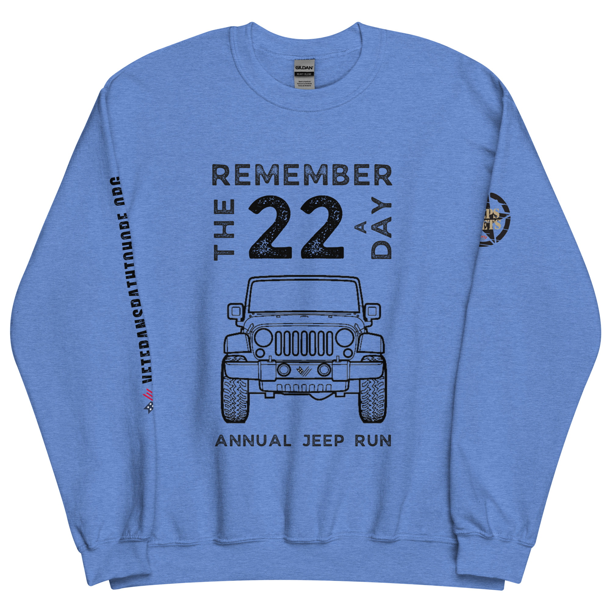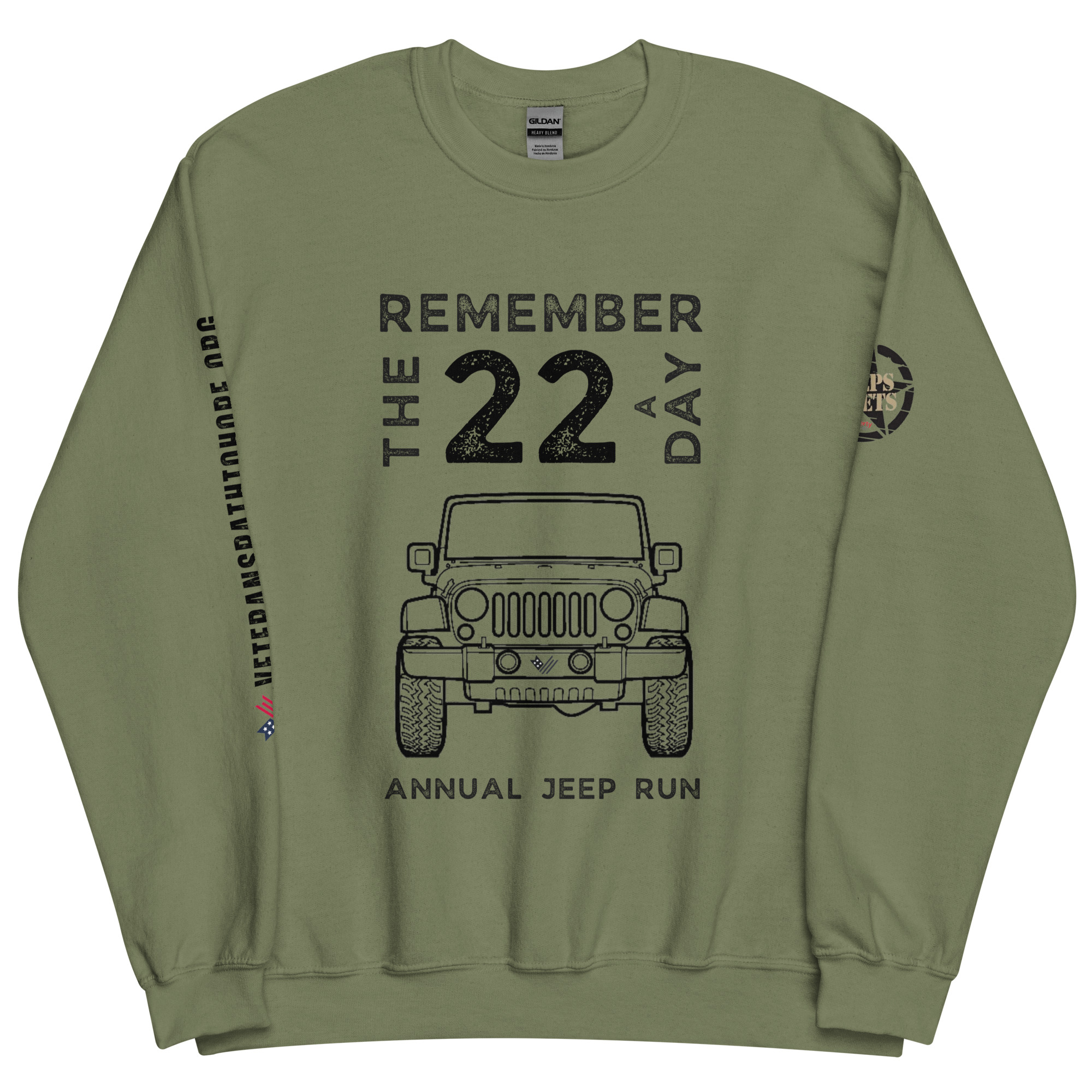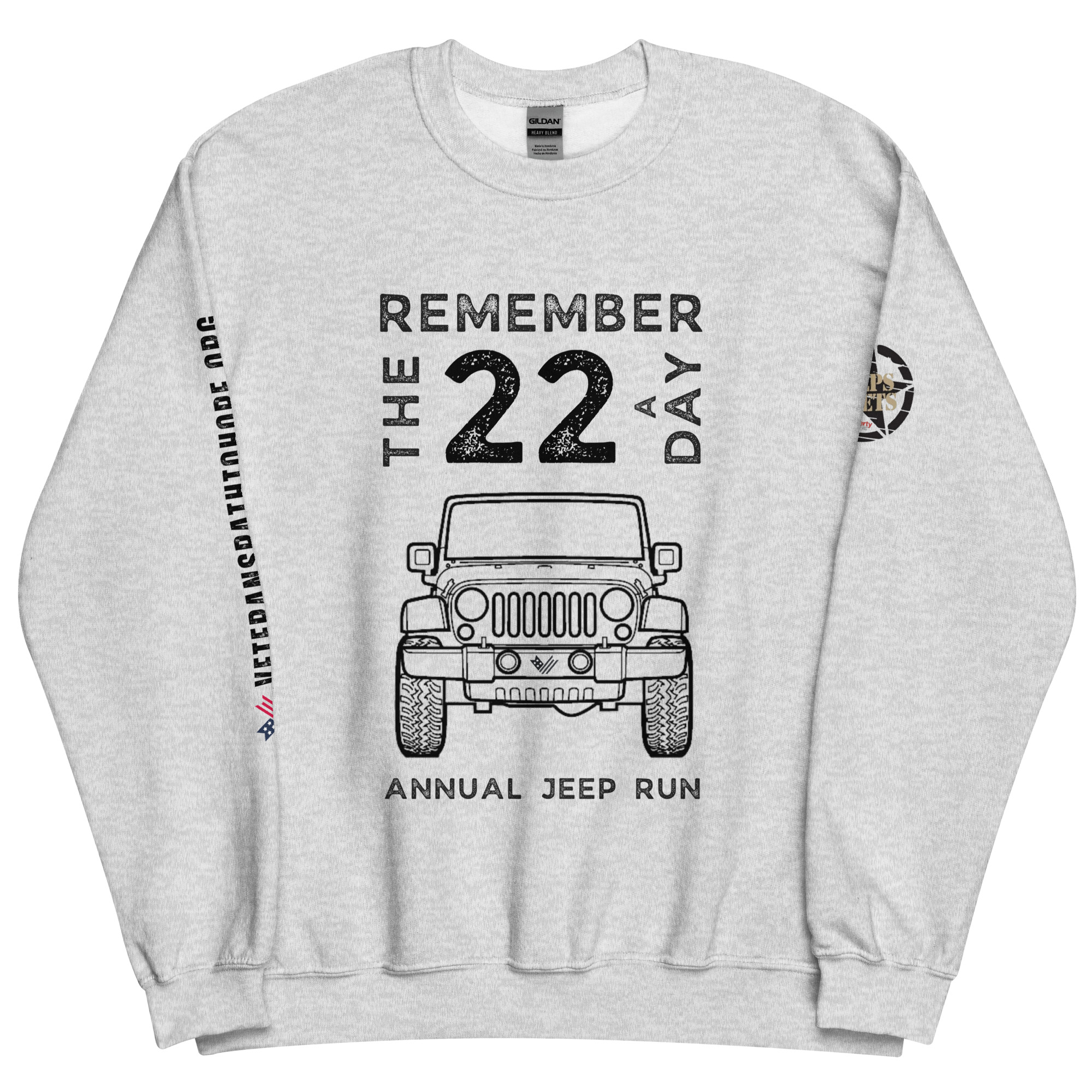 Even if you cannot join us for the Jeep Run, you can still show your Jeep pride and commitment to helping veterans by purchasing one of our exclusive and cozy crewneck sweatshirts (or hoodies, or long-sleeved shirts) – perfect to keep you warm on the Veterans Day Jeep Run in November.